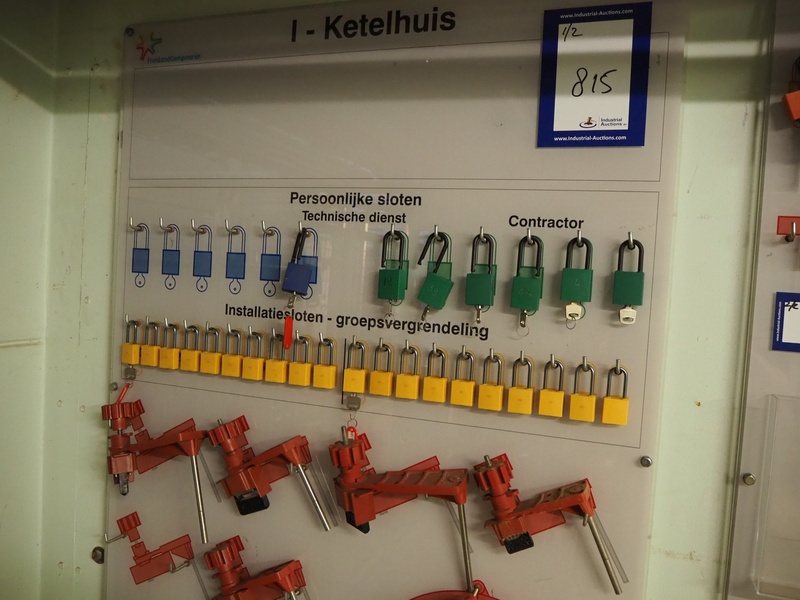 Lock-in / lock-out station, consisting of: 2 wall mounted boards with various locks, dimensions: 1300 mm x 950 mm and 1300 mm x 850 mm.