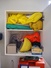 Plastic first aid kit and wooden cabinet with working clothes, dimensions: 400 mm x 150 mm x 300 mm and 500 mm x 320 mm x 580 mm.