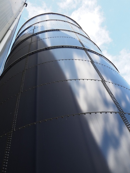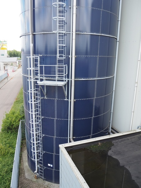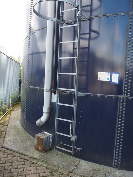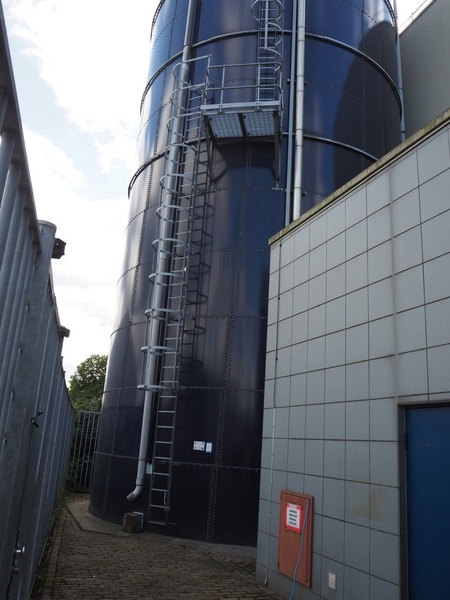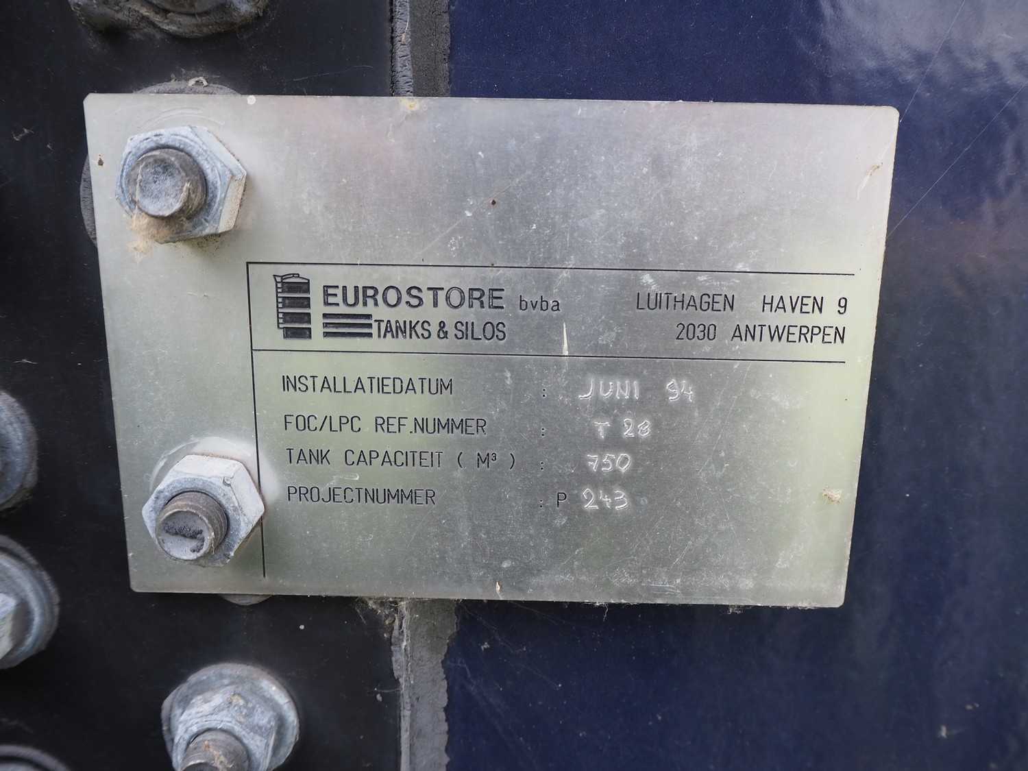 Eurostore bvba steel water tank, installation date: June 1994, capacity: 750 m³, dimensions: Ø 7600 mm x 19500 mm. Please notice that the tank will be available at the end of the project in December 2025.