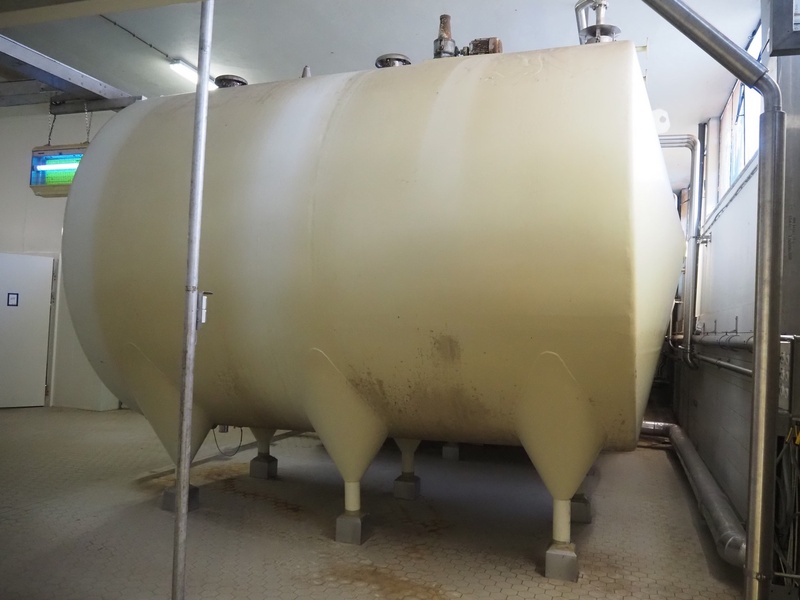 Holvrieka horizontal steel tank, year of construction: 1965, volume: 25000 litres, tank dimensions: Ø 3100 mm x 4700 mm, total dimensions: 3100 mm x 3800 mm x 4700 mm.