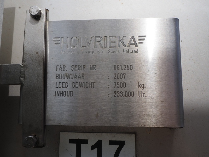 Holvrieka Insulated storage tank with mixing arm used for raw milk and butter milk, factory number: 061.250, year of construction: 2007, volume: 233.000 litre, dimensions: Ø 6300 mm x 10750 mm.