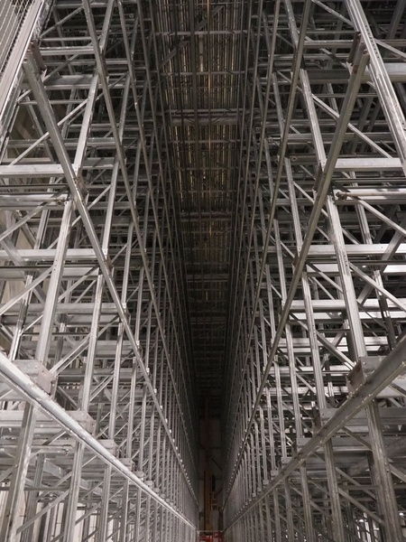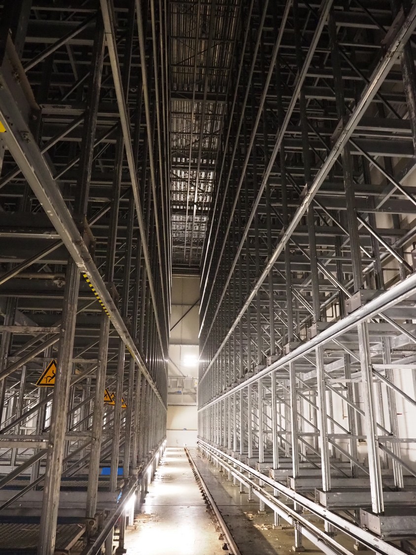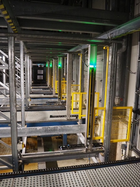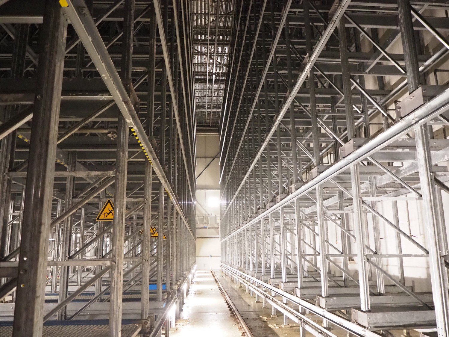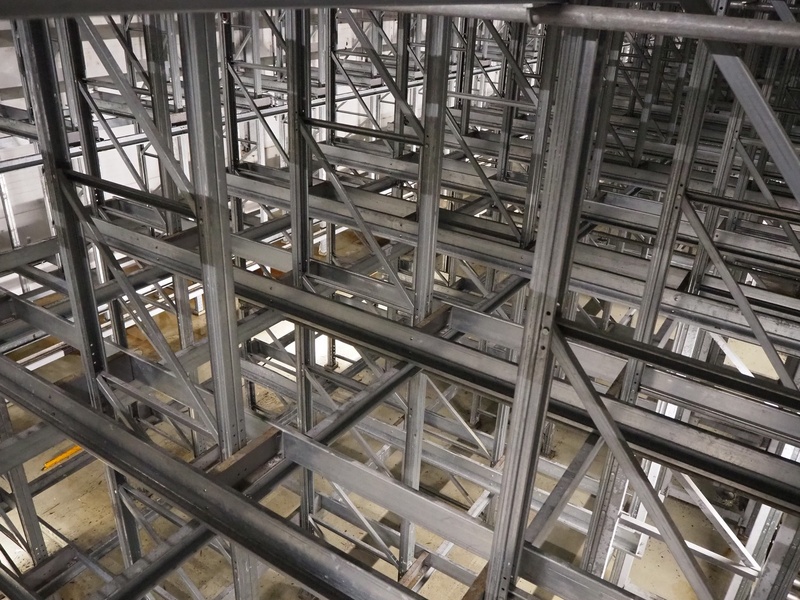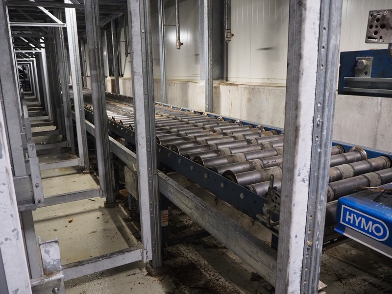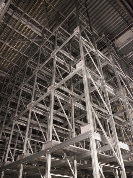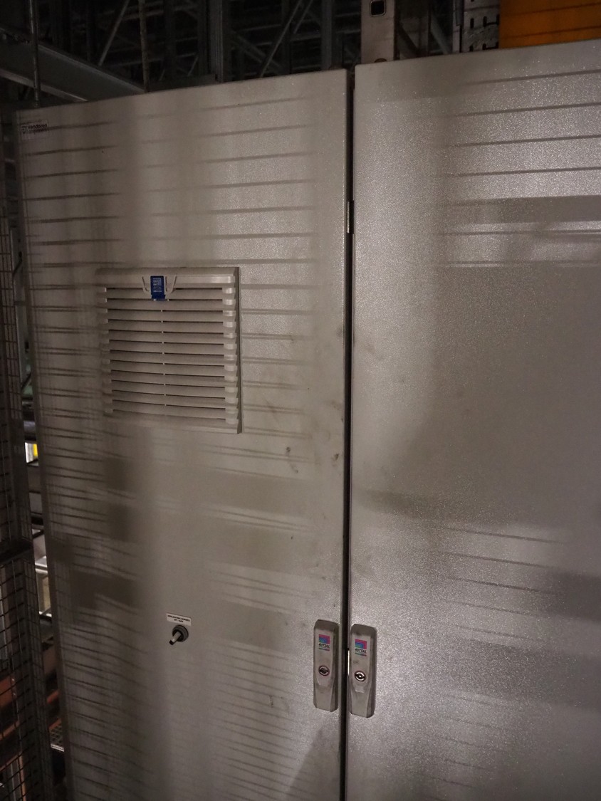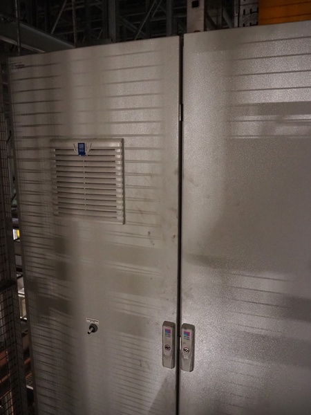 Complete cold storage warehouse, consisting of: Demag warehouse control device, type: Destamat 1016 I, fabrication number: 582 945-01, year of construction: 1994, loading capacity: (2x) 1325 kg, dimensions: 4400 mm x 2150 mm x 1600 mm;Steel pallet racks, consisting of 140 uprights, dimensions: 15000 mm x 1000 mm, large amount of beams, length: 6000 mm;Roller conveyor for pallets, steel rollers, roller width: 1050 mm, total dimensions: 3200 mm x 1200 mm x 1000 mm;Switch cabinet, dimensions: 790 mm x 400 mm x 1900 mm;Various evaporators;Total dimensions warehouse: 60000 mm x 12000 mm x 16500 mm.