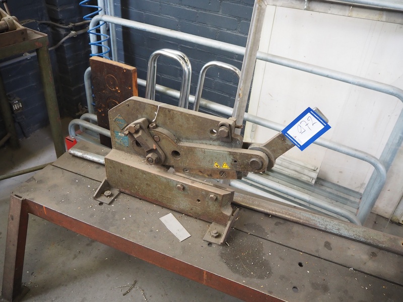 Mubea metal cutter, working width: 200 mm, total dimensions: 1300 mm x 700 mm x 800 mm.