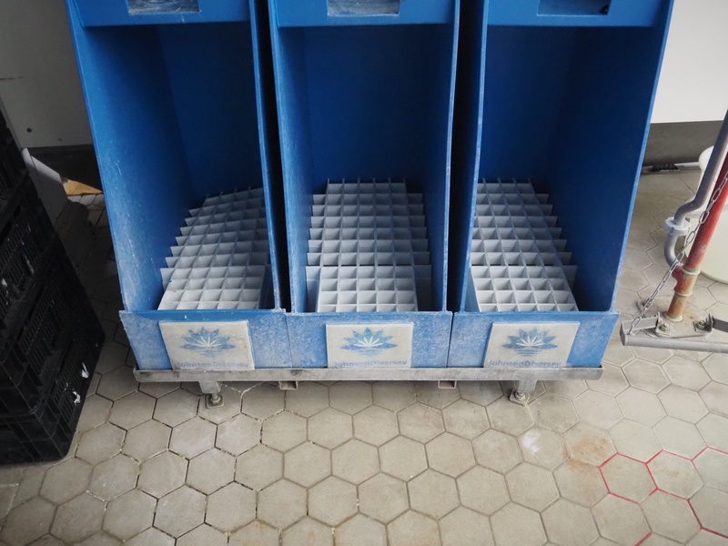 3 Johnson Diversey drip trays on s/s frame, dimensions: 1050 mm x 630 mm x 1770 mm.