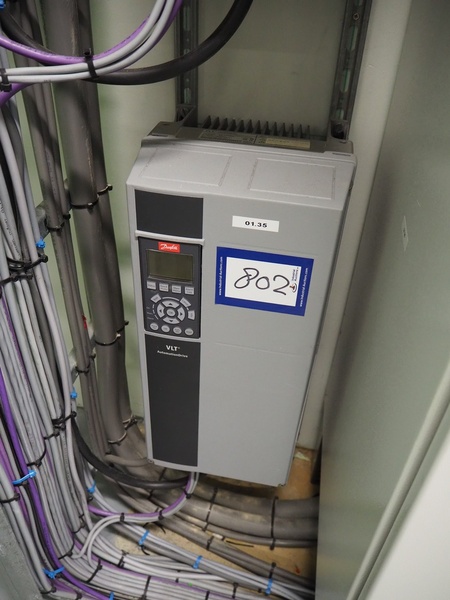 Danfoss frequency converter, 380-500 V, 3 Ph, 50/60 Hz, 22/19 A, 11 kW, dimensions: 220 mm x 280 mm x 450 mm.