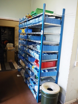 2 steel racks with various spare parts for valves, dimensions: (2x) 1060 mm x 500 mm x 2300 mm.0 bidsLot is closed -