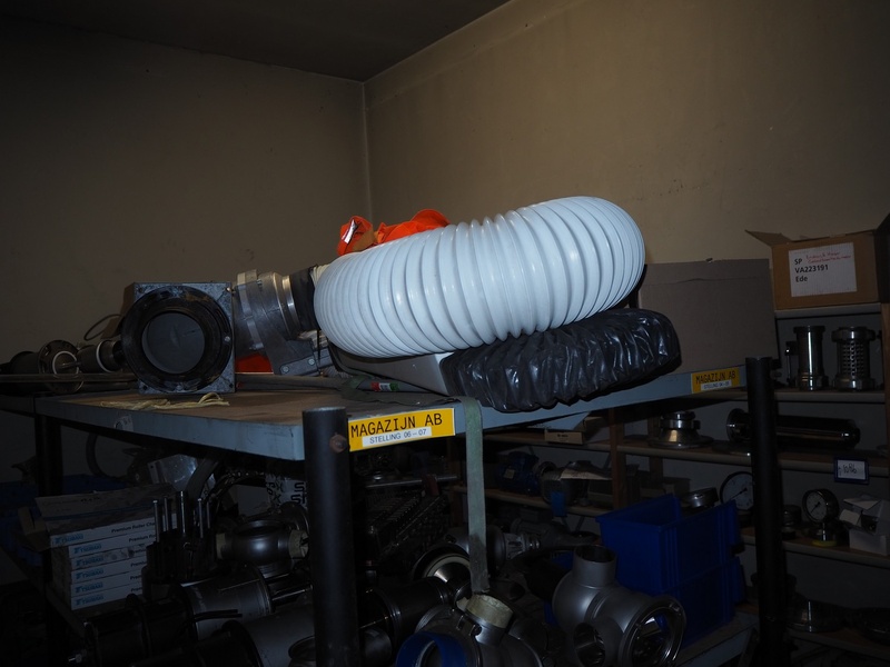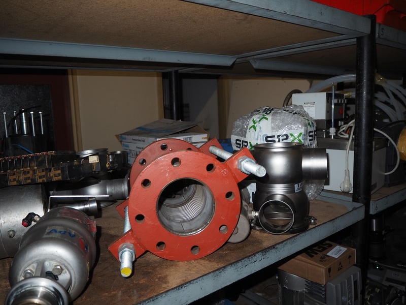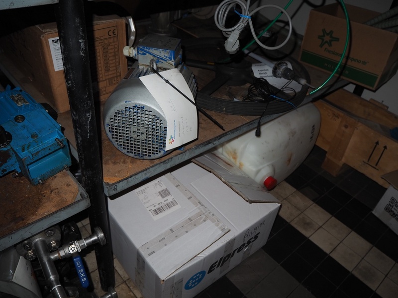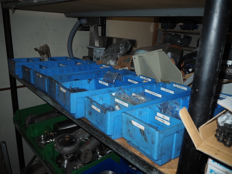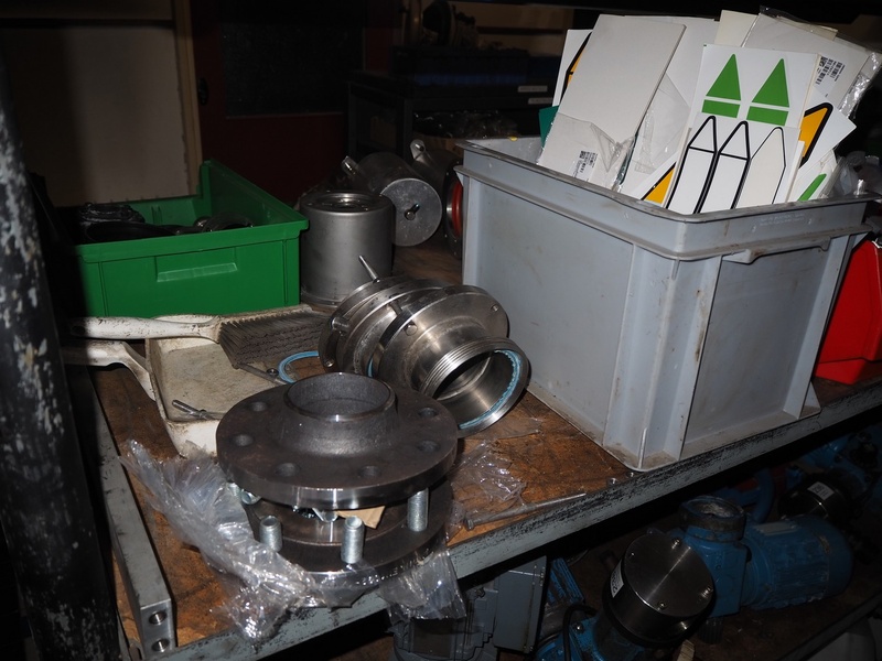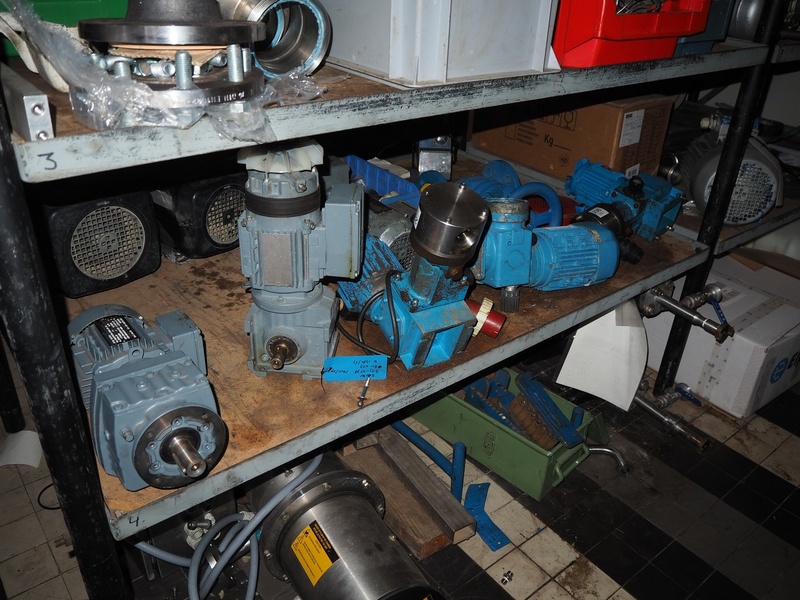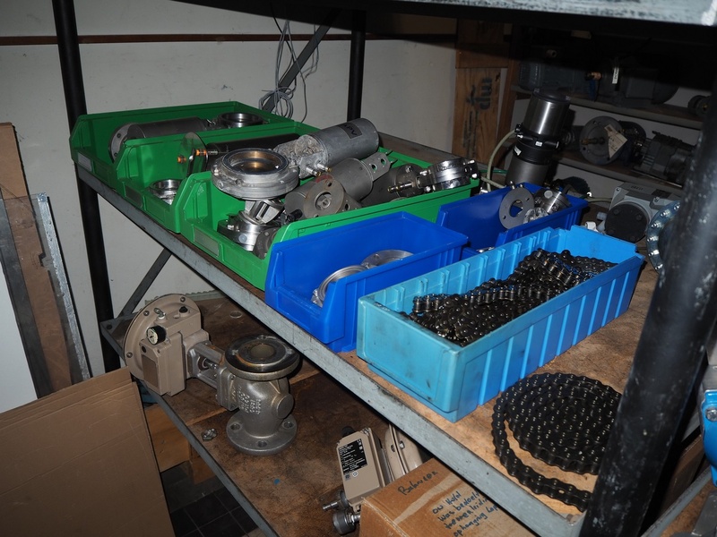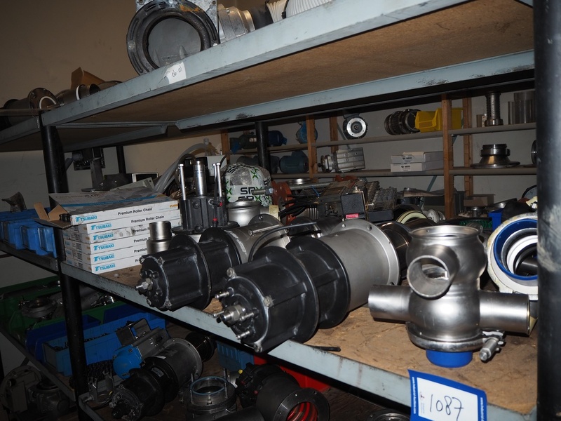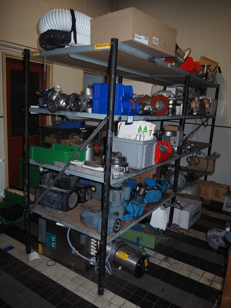 Rack with large amount of various motors, valves and other spare parts, among others: Berson, Samson, APV, SPX, etc, dimensions: 3200 mm x 1000 mm x 2000 mm.