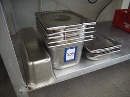 S/s gastronorm trays, dimensions: (7x) 320 mm x 260 mm x 200 mm, (1x) 530 mm x 160 mm x 160 mm.0 bidsLot is closed -