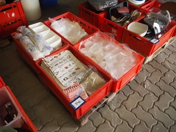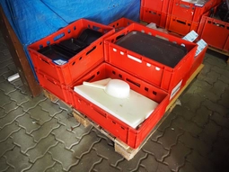 Pallet with 7 plastic crates with catering equipment, dimensions: 1200 mm x 800 mm x 600 mm.0 bidsLot is closed -