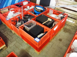 Pallet with 8 plastic crates with catering equipment, dimensions: 1200 mm x 800 mm x 600 mm.0 bidsLot is closed -