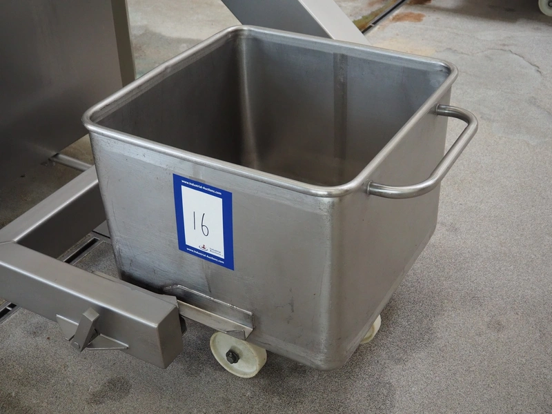 Handtmann vacuum filling machine with lifter for 200 liter meat bins, type: VF616, number: 26190, year of construction: 2009, 400 V,…10 bidsLot is closed -