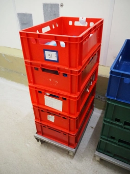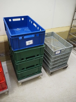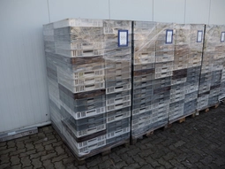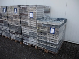 3 pallets with 80 plastic crates each, dimensions each crate: 600 mm x 400 mm x 75 mm.1 bidLot is closed -