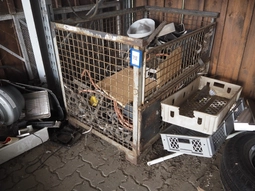 Steel crate with large amount of meat hooks, dimensions: 1250 mm x 850 mm x 900 mm.2 bidsLot is closed