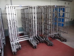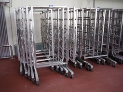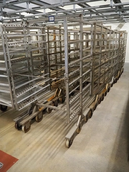 38 s/s smoke trolleys, 6 floors, floor dimensions: 1010 mm x 950 mm, total dimensions: (38x) 1020 mm x 1030 mm x 1970 mm.12 bidsLot is closed -