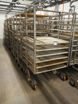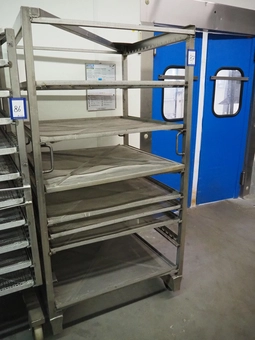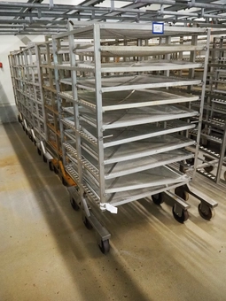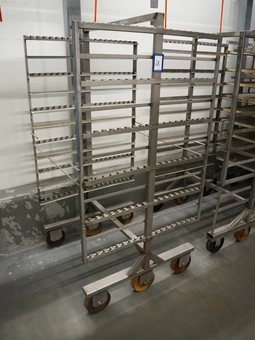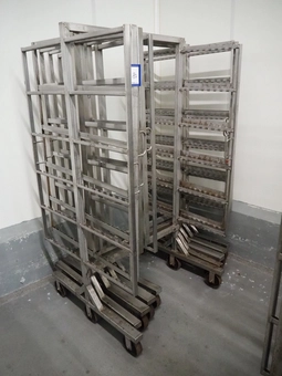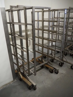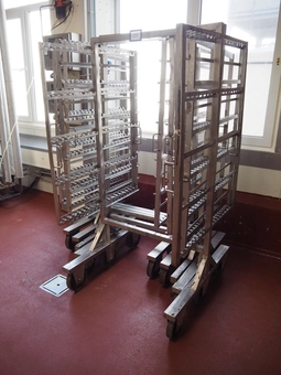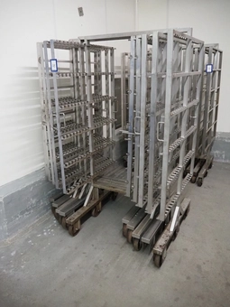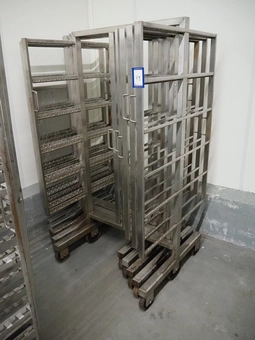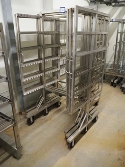19 s/s smoke trolleys, 6 floors, floor dimensions: 960 mm x 1000 mm, total dimensions: (19x) 1000 mm x 1020 mm x 1980 mm.6 bidsLot is closed -