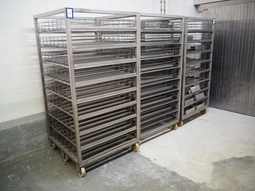 3 s/s smoke trolleys, 6 floors, floor dimensions: 1000 mm x 1010 mm, total dimensions: (3x) 1000 mm x 1020 mm x 2000 mm.5 bidsLot is closed -