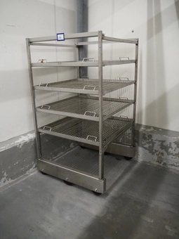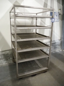 S/s smoke trolley, 5 floors, floor dimensions: 990 mm x 970 mm, total dimensions: 1050 mm x 1000 mm x 1940 mm.3 bidsLot is closed -