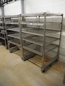 2 s/s smoke trolleys with s/s moulds, 5 floors, floor dimensions: 1000 mm x 990 mm, total dimensions: 1060 mm x 1000 mm x 1930 mm. …6 bidsLot is closed