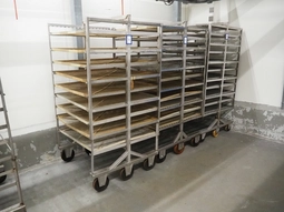 12 s/s smoke trolleys, 6 floors, floor dimensions: 980 mm x 1000 mm, total dimensions: (12x) 1010 mm x 1020 mm x 1970 mm.4 bidsLot is closed -