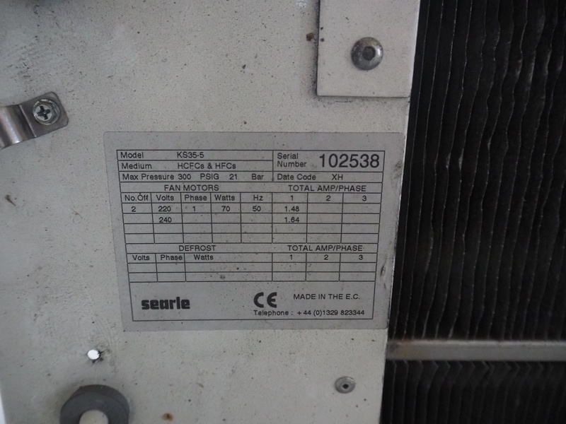Searle evaporator with 2 fans, model: KS35-5, serial number: 102538, medium: HCFCs & HFCs, dimensions: 1150 mm x 370 mm x 470 mm.