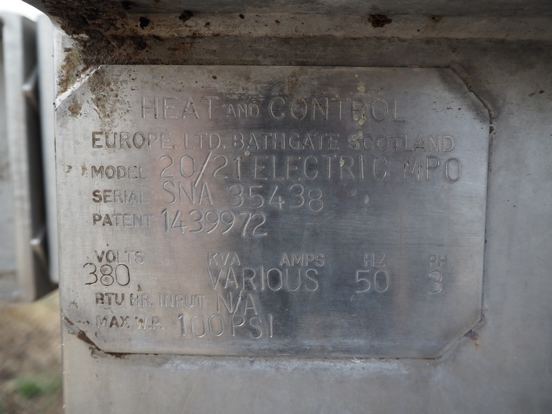 Heat and Control linear oven, model: 20/21 Electric MPO, serial number: SNA 35438, 380 V, 3 Ph, 50 Hz, s/s mesh belt, belt width: 600 mm, electric heated, total dimensions: 9230 mm x 1610 mm x 2530 mm.