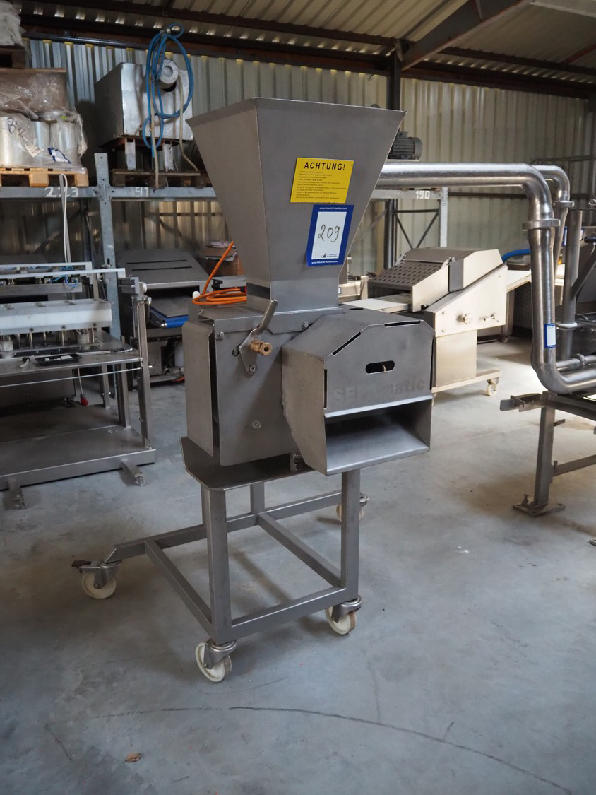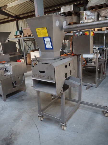 Sepamatic mobile separator, type: SEPA 410 T, machine number: 108252, 400 V, 50 Hz, 2.2 kW, diameter drum: 175 mm, diameter perforations: 2 mm, total dimensions: 1300 mm x 1250 mm x 1930 mm. Including extra drum with 2 mm perforations.