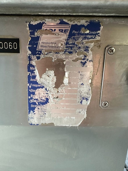 Kolbe bandsaw, type: K320, table dimensions: 700 mm x 600 mm, total dimensions: 850 mm x 800 mm x 1700 mm.