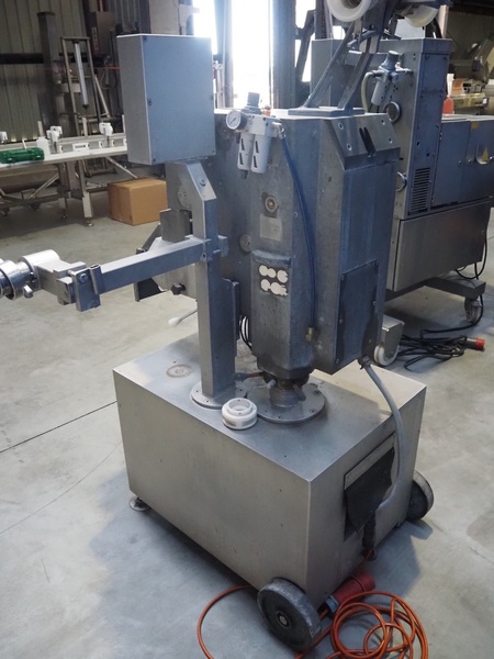 Tipper Tie Alpina mobile double clipper, type: DC 15/12, serial number: 852.001, 400 V, 3 Ph, 50 Hz, 10 bar, dimensions: 1140 mm x 1160 mm x 1760 mm. Technical condition unknown.