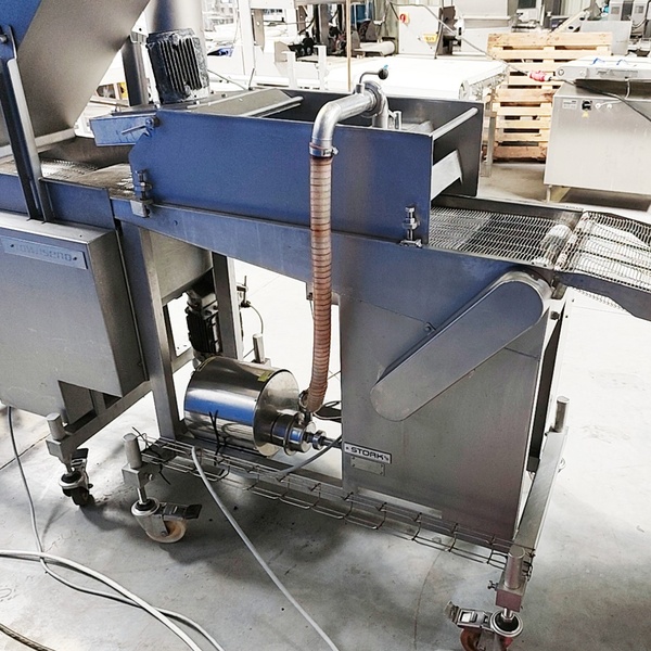 Stork forming- and breading line, consisting of: Carnitech / Stork Titan B.V. mobile lifter for 200 liter meat bins, type: L25, serial number: ON 25103, year of construction: 2006, 400 V, 3 Ph, 50 Hz, 2.1 A, 0.75 kW, elevating height: 2770 mm, total dimensions: 1500 mm x 1440 mm x 3000 mm, Stork Titan B.V. mobile forming machine, model: THV 400-E65 TA2107, type: 4779132, serial number: 10058201, year of construction: 2006, s/s mesh belt, belt width: 400 mm, diameter press: 95 mm, total dimensions: 2450 mm x 900 mm x 2040 mm, Stork Titan B.V. mobile battering machine, Marel Townsend Further Processing B.V. mobile breading machine, model: TPM 400 TD2104, type: 4279225, serial number: 10153206, year of construction: 2016, s/s mesh belt, belt width: 400 mm, clearance: 420 mm x 70 mm, total dimensions: 2400 mm x 830 mm x 1950 mm.