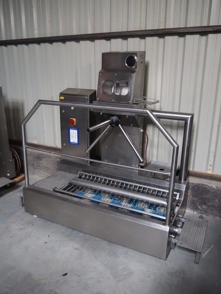 EDT Hygiene station with sole cleaner, hand disinfection and tourniquet, brush length:(2x) 900 mm, total dimensions: 2000 mm x 870 mm x 1740 mm.