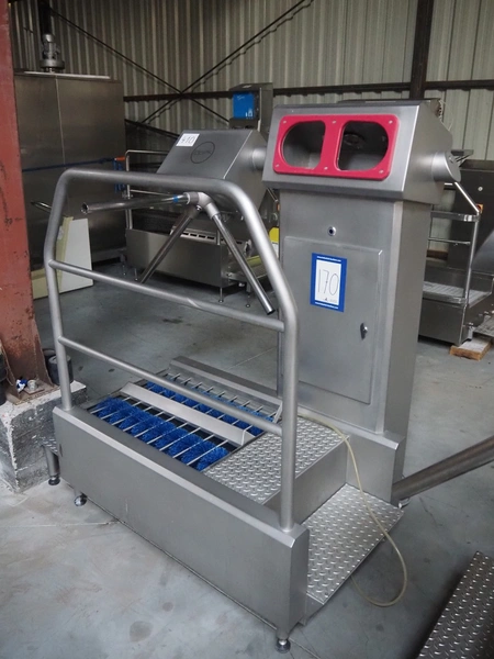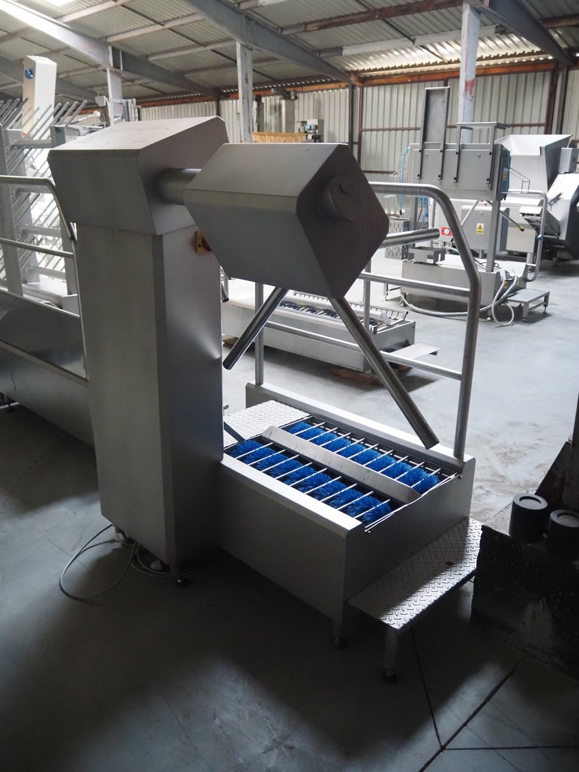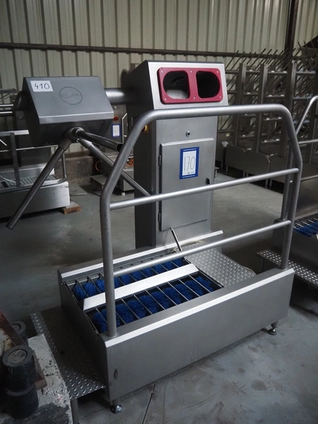Elpek hygiene station with sole cleaner, hand disinfection and tourniquet, type: 142-004-02, serial number: SR1115029, year of construction: 11/2015, 230/400 V, 3 Ph, 50 Hz, 500 W, brush length: (2x) 700 mm, total dimensions: 1500 mm x 1000 mm x 1640 mm.