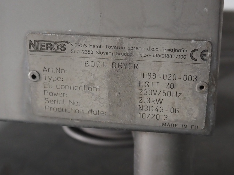 Nieros heated boot dryer, type: HSTT 20, serial number: N3D43-06, article number: 1088-020-003, year of construction: 10/2013, 230 V, 50 Hz, 2.3 kW, for 20 pairs of boots, total dimensions: 1610 mm x 455 mm x 1910 mm.