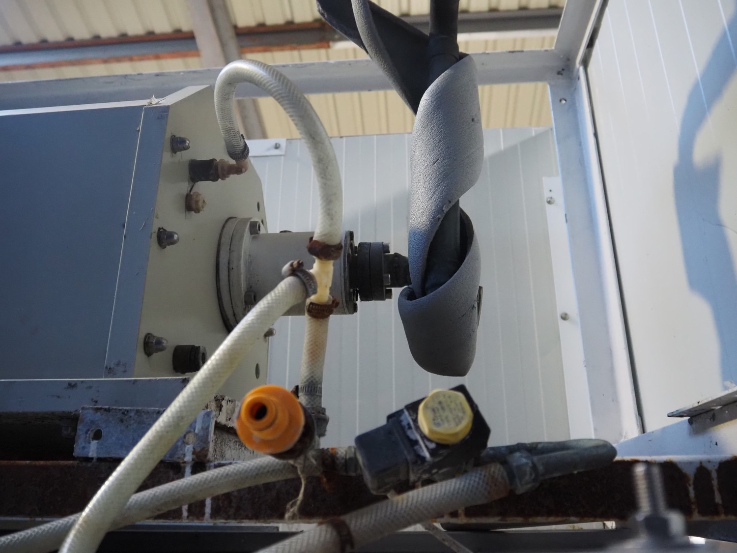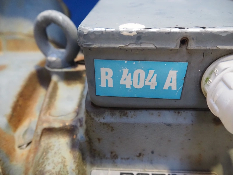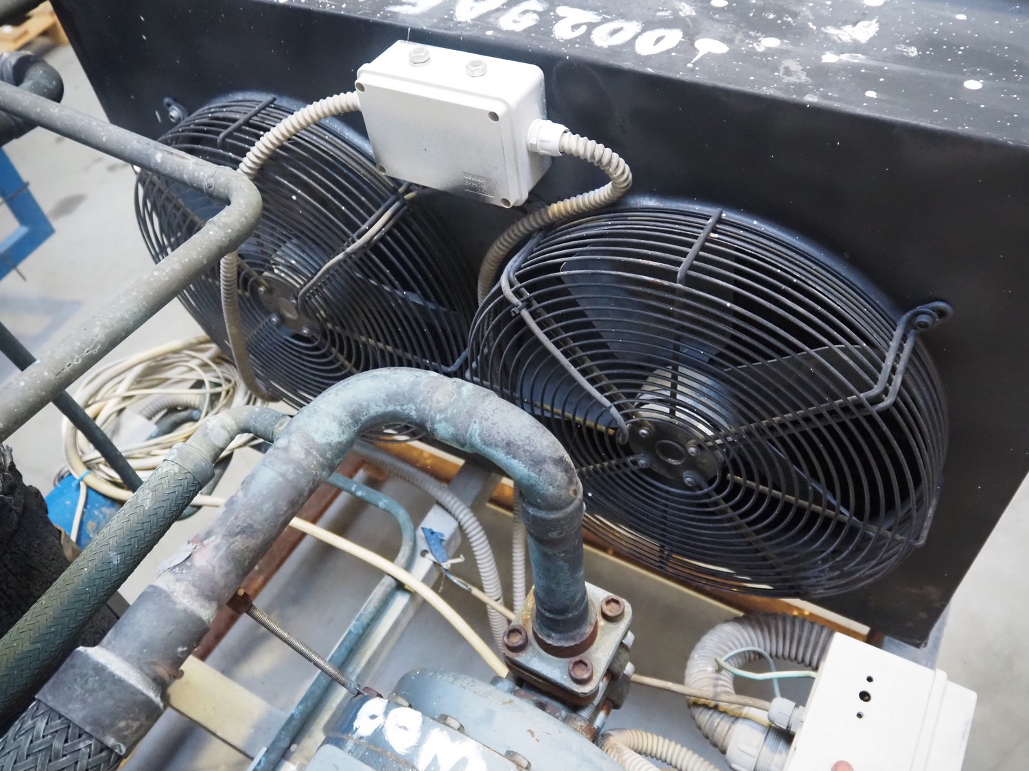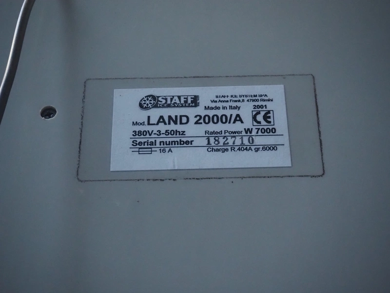 Maja ice machine with Dorin cooling compressor, type compressor: K1000CS, serial number: 020719110, 380/420 V, 3 Ph, 50 Hz, 7.4 kW, 1450 rpm, dimensions cooling compressor: 1450 mm x 1000 mm x 1150 mm, dimensions Maja ice machine: 1600 mm x 1200 mm x 2750 mm.