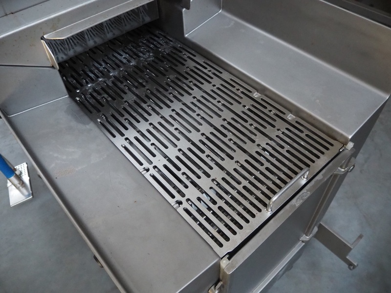Rühle injector, model: IR 56, number: 0522, year of construction: 2011, 400 V, 3 Ph, 50 Hz, 16 A, 7.5 kW, s/s walking beam, beam width: 350 mm, total dimensions: 1500 mm x 950 mm x 2040 mm.