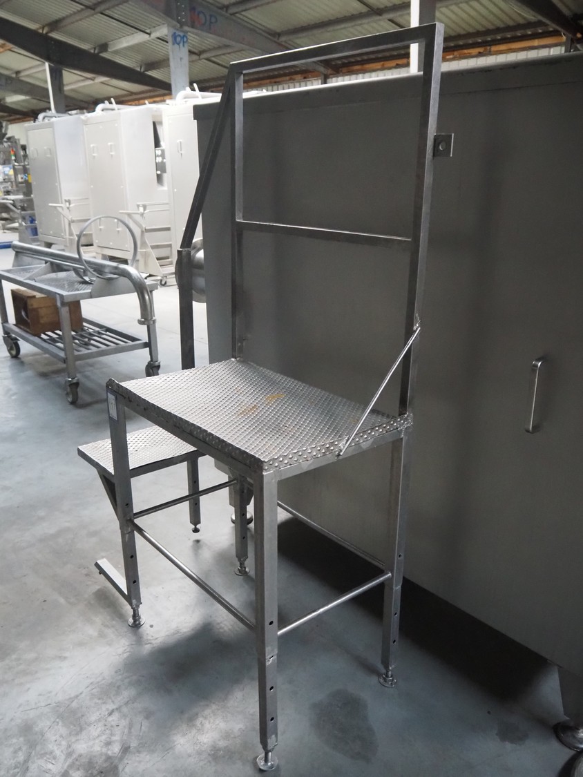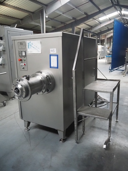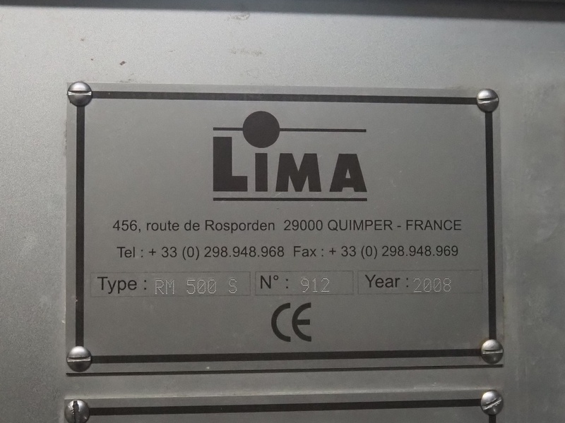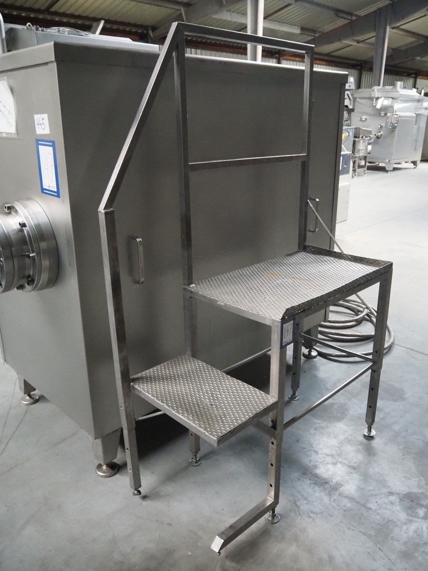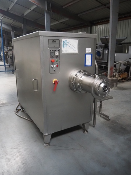 Lima grinder, type: RM 500 S, number: 912, year of construction: 2008, perforation: 1 mm, grinder total dimensions: 2400 mm x 1100 mm x 1470 mm. Including s/s stairs, dimensions: 1100 mm x 510 mm x 1820 mm and mobile s/s tool trolley, dimensions: 2350 mm x 680 mm x 1220 mm.