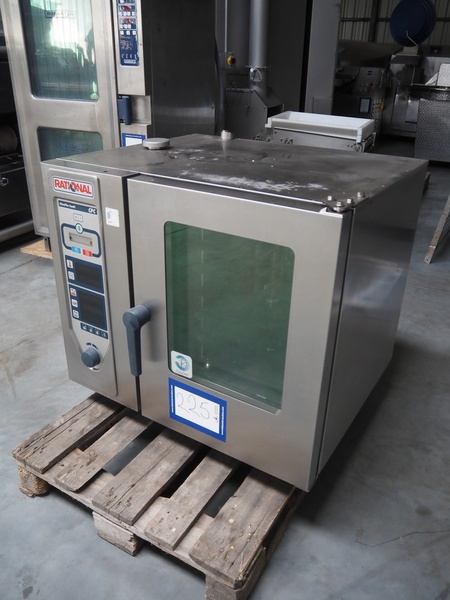 Rational AG combi steamer, type: CPC 61, serial number: E61CD03061091383, year of construction: 2003, 400 V, 3 Ph, 50/60 Hz, 10 kW, 6 floors, floor dimensions: (6x) 540 mm x 330 mm, total dimensions: 900 mm x 770 mm x 820 mm.
