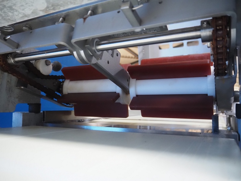 Steen mobile skinning machine, type: ST 600, serial number: 2G8/1709B, 380 V, 50/60 Hz, 5.8 A, 2200 W, plastic belt, belt width: (2x) 430 mm, working width: 340 mm, clearance 520 mm x 60 mm, total dimensions: 2900 mm x 650 mm x 1460 mm.
