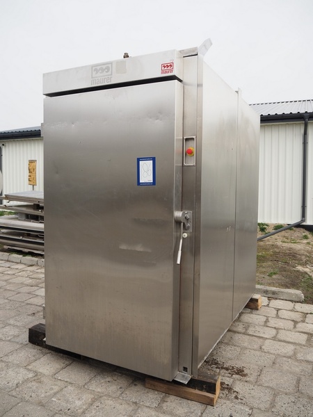 Maurer AG cooking chamber for 2 trolleys, type: SKK 3621 ND, serial number: 0275360, year of construction: 2003, 400 V, 50 Hz, 10.0 A, 3.0 kW, inside dimensions: 2100 mm x 1100 mm x 2100 mm, total dimensions: 2480 mm x 1470 mm x 2600 mm.