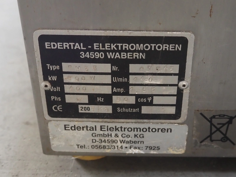 Edertal Elektromotoren GmbH tenderizer, type: TM35, number: 67545, 400 V, 3 Ph, 50 Hz, 1.65 A, 600 kW, clearance: 30 mm x 210 mm, total dimensions: 610 mm x 270 mm x 520 mm.