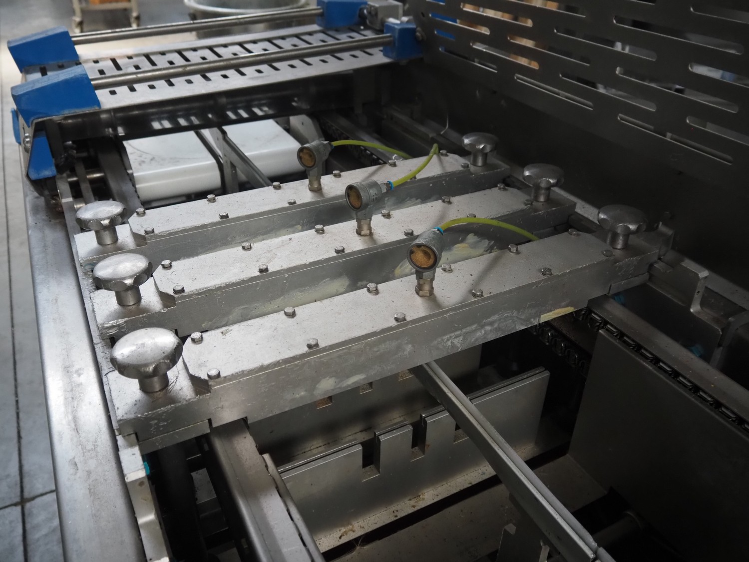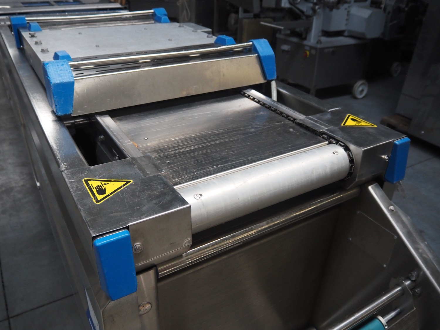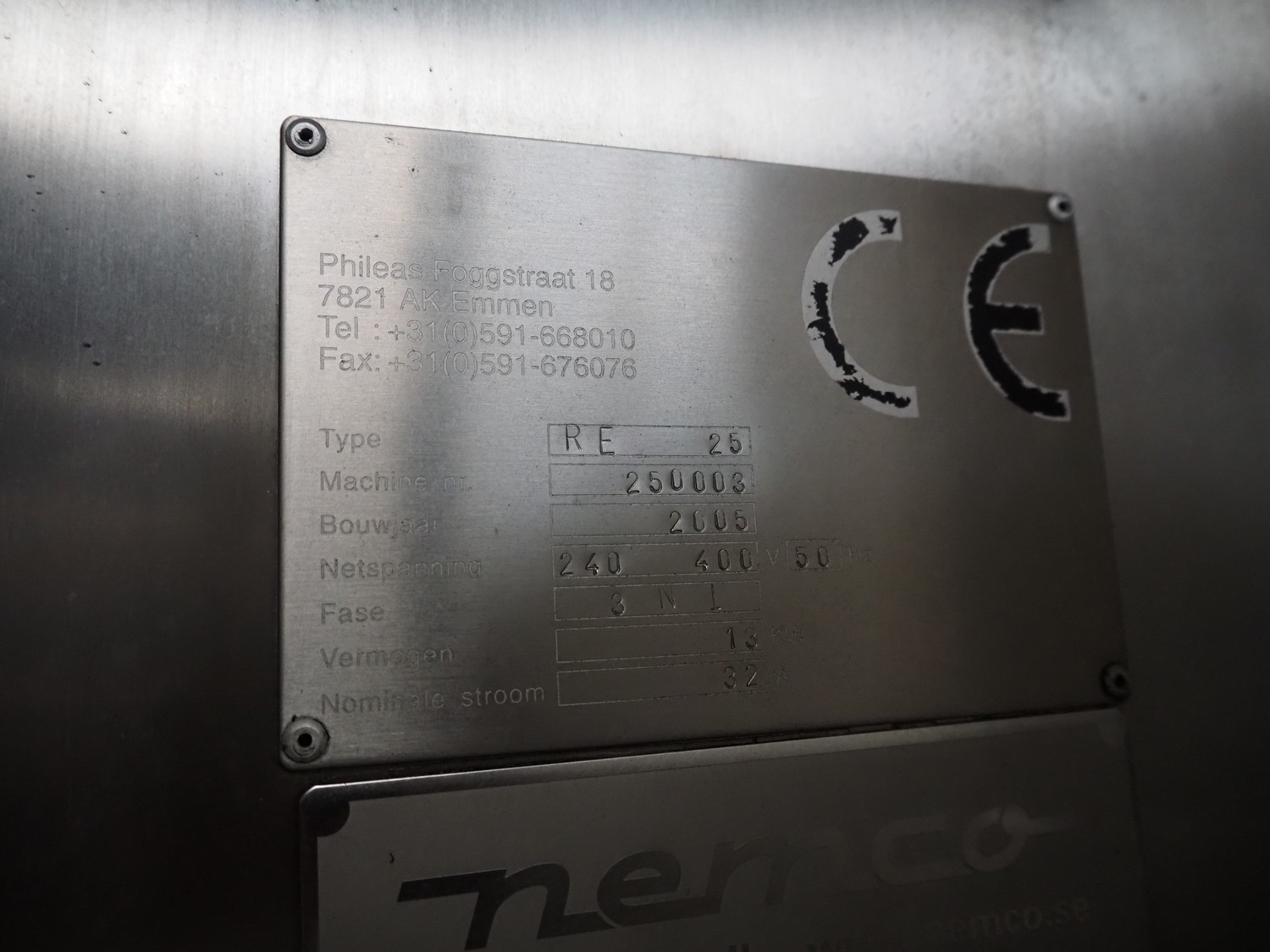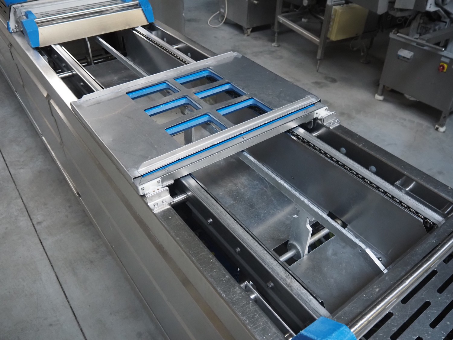 Repak thermoformer, type: RE 25, serial number: 250003, year of construction: 2005, 240/400 V, 3 Ph, 50 Hz, 32 A, 13 kW, dye: 185 mm x 125 mm, index: 450 mm x 415 mm, with Busch vacuum pump, total dimensions: 8500 mm x 1200 mm x 2000 mm. Including Busch suction device for rest film.