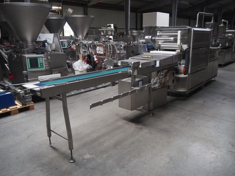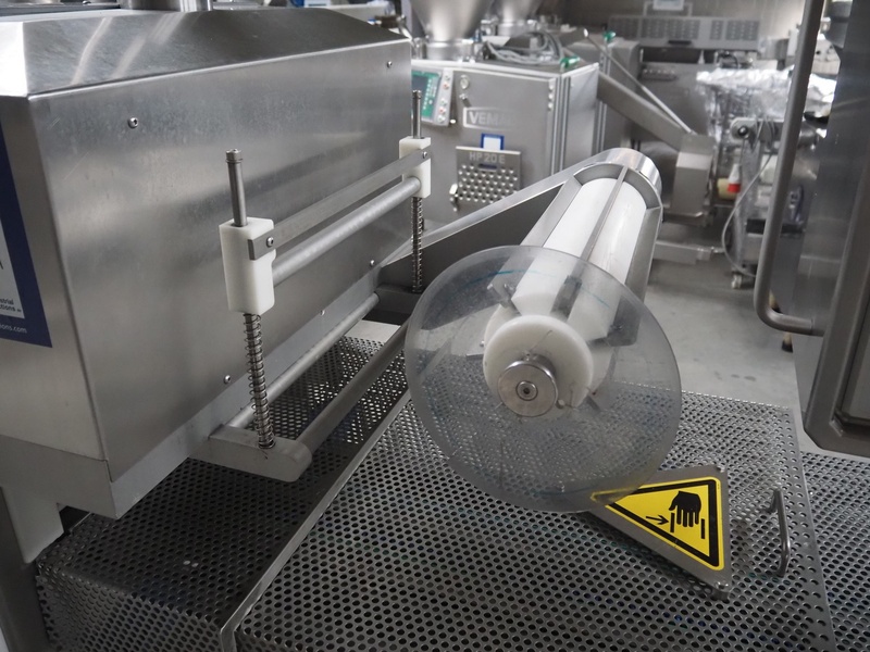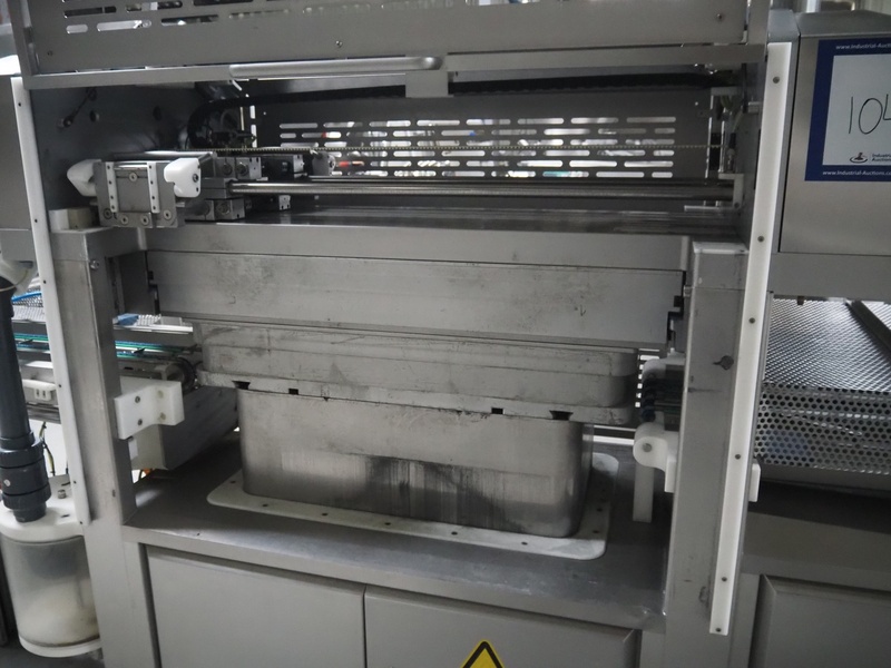 Sealpac GmbH traysealer, type: SEALPAC 800+, serial number: TVG 01 1123 01, year of construction: 2004, 230/400 V, 3 Ph, 10 kW, 2000 kg, chain belt, belt width: 40 mm, clearance: 340 mm x 110 mm, total dimensions: 3750 mm x 950 mm x 2150 mm. Including outfeed belt, dimensions: 3800 mm x 700 mm x 1200 mm and s/s trolley with dye, dimensions dye: 250 mm x 70 mm, total dimensions: 1500 mm x 1150 mm x 1350 mm.