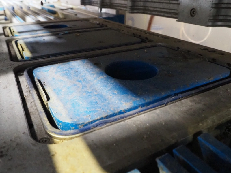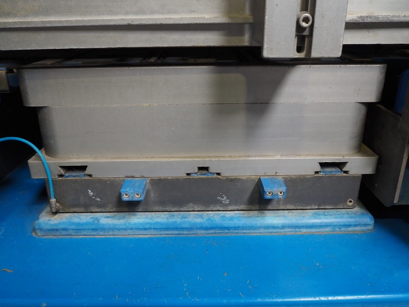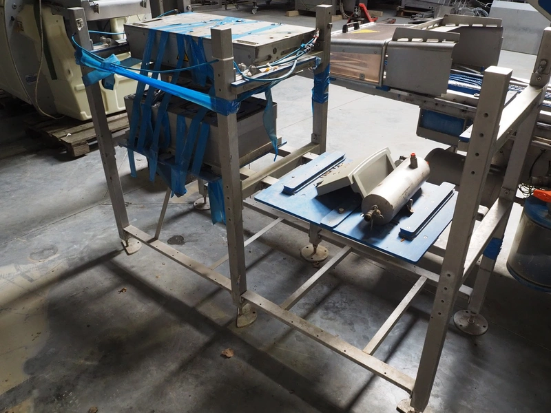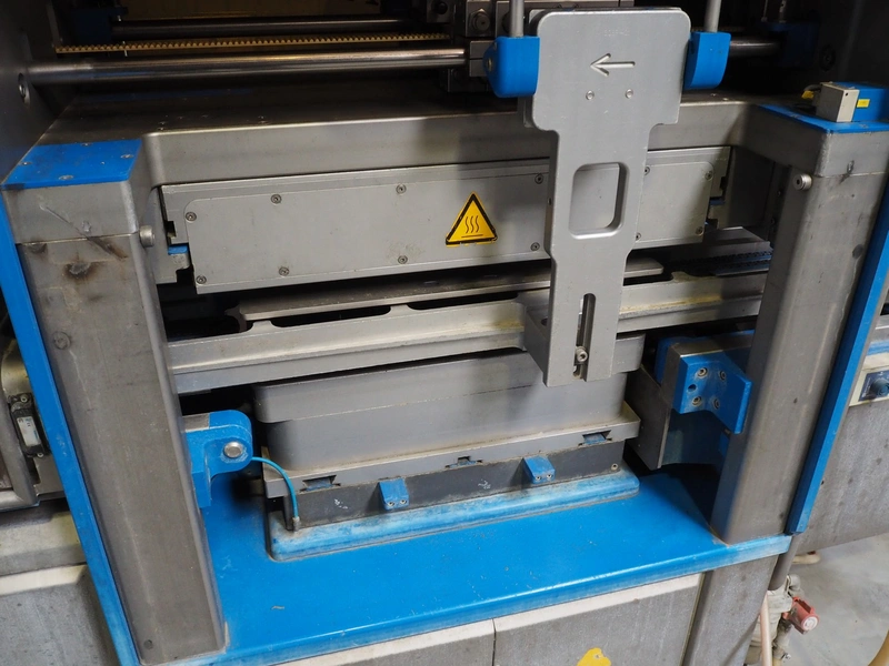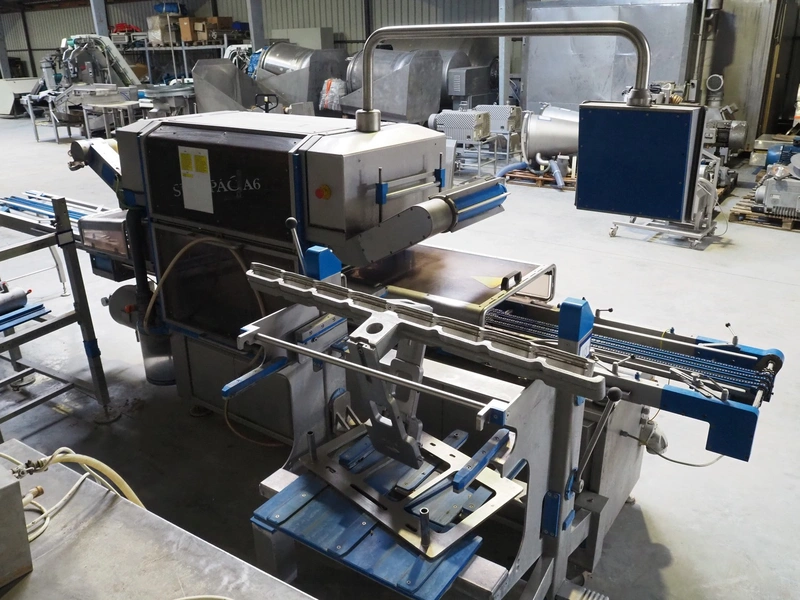 Sealpac GmbH traysealer, type: SEALPAC A6, serial number: A6 01 2320, year of construction: 2010, 3x400/220 V, 50-60 Hz, 8 kW, weight: 1595 kg, dimensions dye: (3x) 280 mm x 180 mm, outfeed lane width: 125 mm, total dimensions traysealer: 5500 mm x 850 mm x 2100 mm. Including s/s rack with extra form, dimensions dye: (4x) 240 mm x 140 mm, total dimensions rack: 1800 mm x 660 mm x 1280 mm, and s/s trolley to change forms, dimensions: 1100 mm x 800 mm x 1450 mm.
