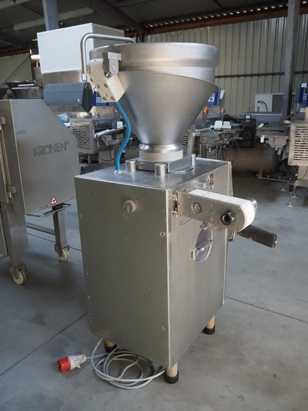 Handtmann vacuum filling machine, type: VF 50, number: 12475, year of construction: 2004, 400 V, 50 Hz, 11.0 A, 4.0 kW, dimensions: 950 mm x 820 mm x 1650 mm. Including linking and case holding device.