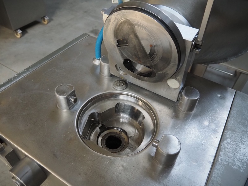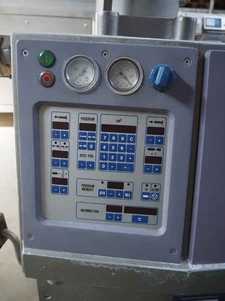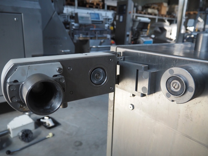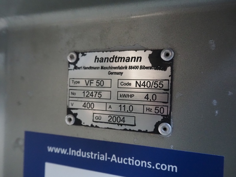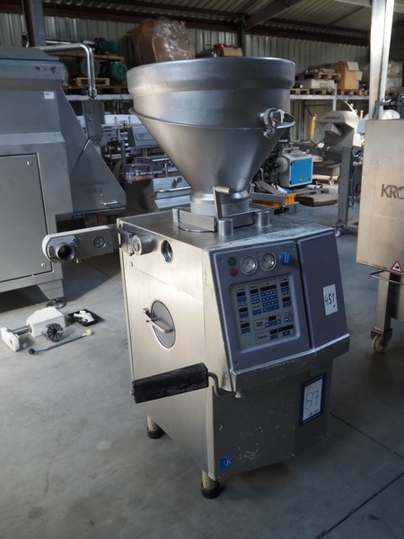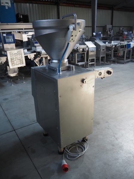 Handtmann vacuum filling machine, type: VF 50, number: 12475, year of construction: 2004, 400 V, 50 Hz, 11.0 A, 4.0 kW, dimensions: 950 mm x 820 mm x 1650 mm. Including linking and case holding device.
