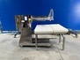 SFK Systems A/S circular saw with transport belt, type: S690-011-007, number: 30695-1003, year of construction: 2012-08, diameter blade: 690 mm, plastic belt, total dimensions: 2200 mm x 1200 mm x 1700 mm. Missing saw blade.