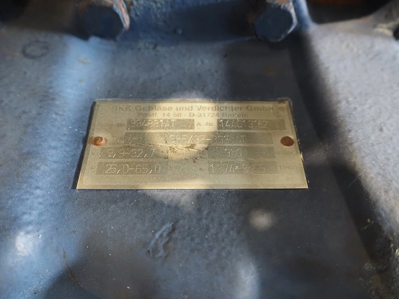 2 RKR Gebläse und Verdichter GmbH positive displacement blowers, type: S85/3P-BS35AT, fabrication number: 994881AT and 0103135, 26.0-65.0 kW, dimensions: 1730 mm x 1500 mm x 1500 mm. Including 3 pallets with extra parts, dimensions: 1600 mm x 1570 mm x 620 mm, 1700 mm x 900 mm x 480 mm, 1200 mm x 800 mm x 500 mm.