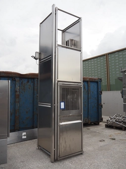 1932-409: NN lifter for pallet boxesLifter for pallet boxes, clearance: 1100 mm x 1350 mm, lifting height: 2200 mm, total dimensions: 2400 mm x 2200 mm x 4100 mm.11 bidsLot is closed