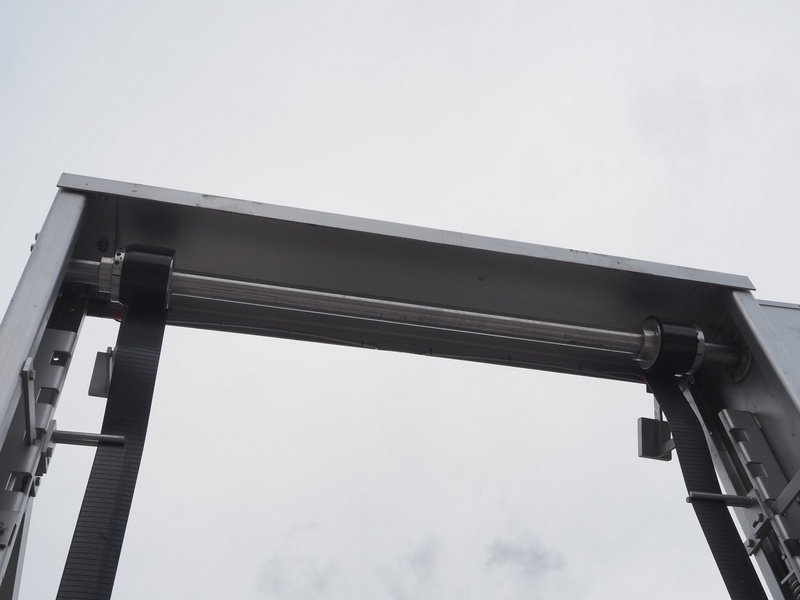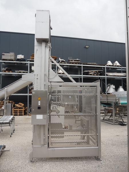 Lifter for pallet boxes, clearance: 1100 mm x 1350 mm, lifting height: 2200 mm, total dimensions: 2400 mm x 2200 mm x 4100 mm.