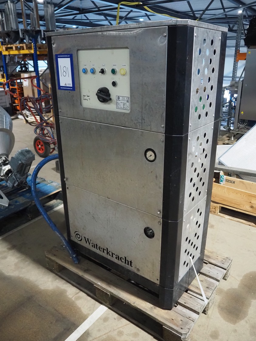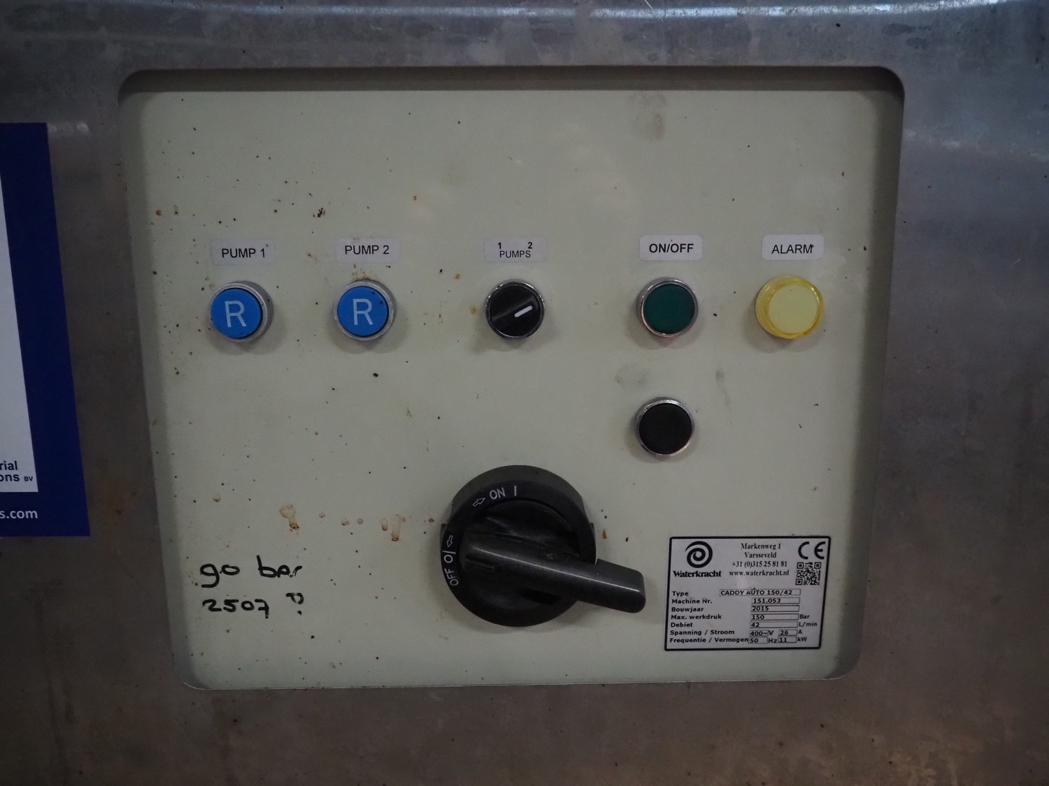 Waterkracht stationary high-pressure installation, type: CADDY AUTO 150/42, machine number: 151.053, year of construction: 2015, 400 V, 3 Ph, 50 Hz, 26 A, 11 kW, capacity: 42 l/min, dimensions: 900 mm x 470 mm x 1530 mm.