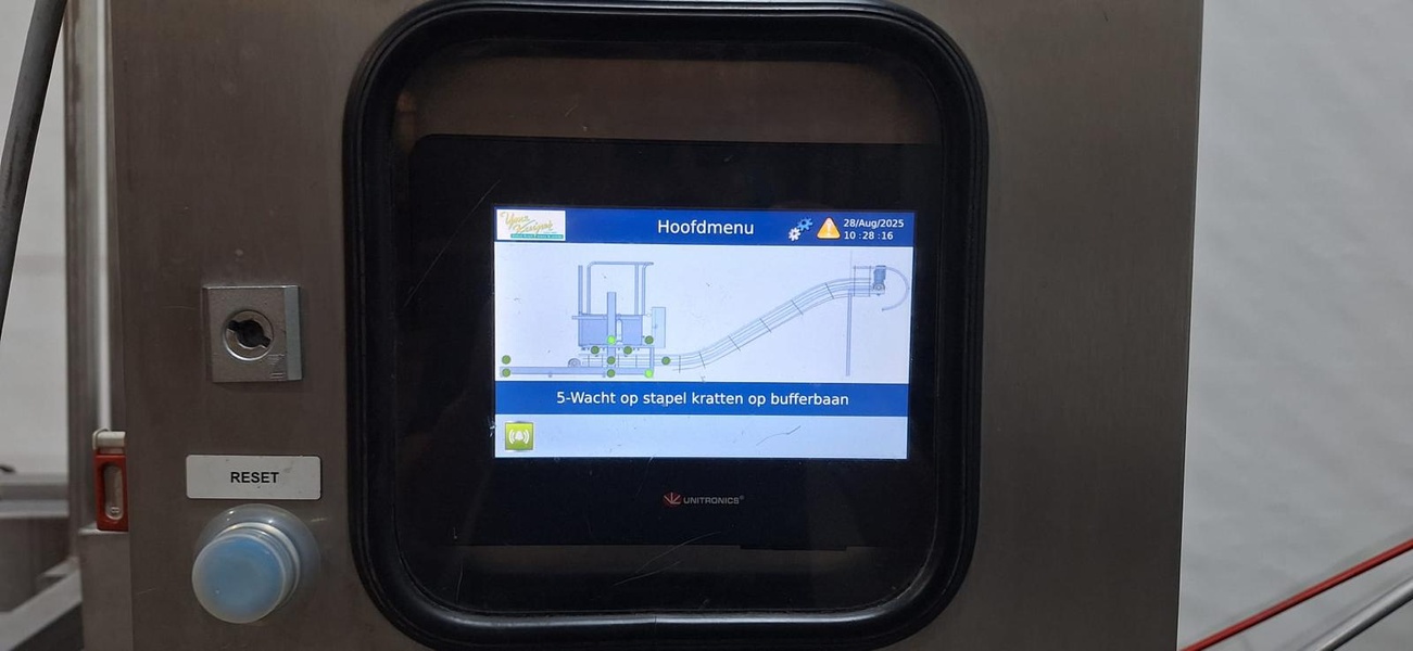 - Systemate Numafa B.V. crate washer, type: 19.50.015.400, year of construction: 2002, 400 V, 63 A, dimensions: 6000 mm x 1400 mm x 2600 mm.